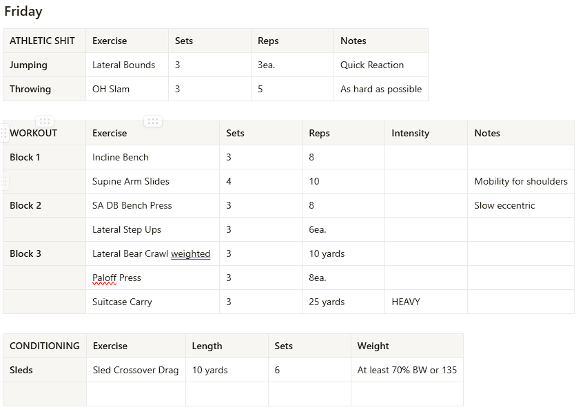 Now insert your own exercises, sets, and reps and you will have your first week of your workout program!